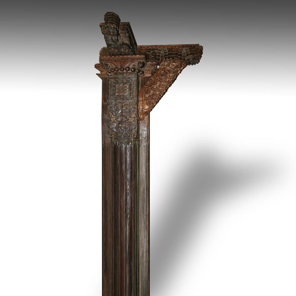 Carved Pillar with "Tree of Life" Motif; Cross Top Cantilevered Capitol and Stone Base