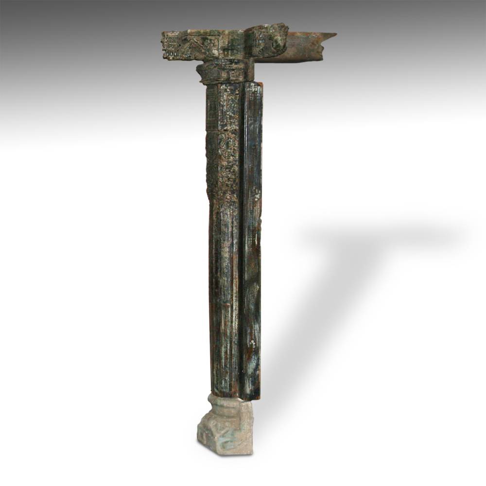 Carved Half Pillar with Cross Style Capitol & Stone Base