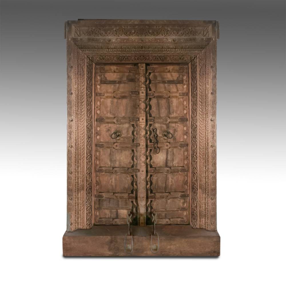 Framed Double Doors with Iron Straps and Forged Chain Locks