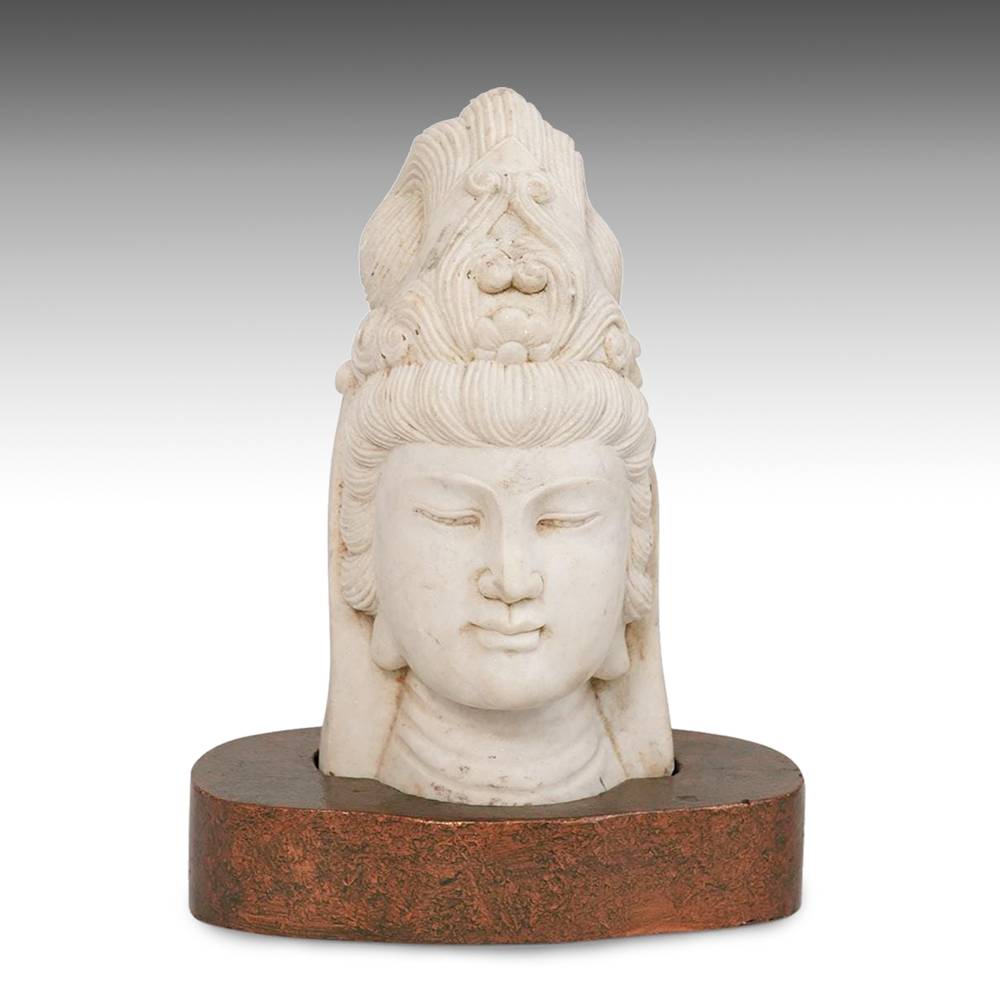 Figure Bust of Quan Yin on Wood Base
