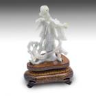 CARVED WHITE JADE QUAN YIN FIGURE ON SILVER INCISED WOOD BASE