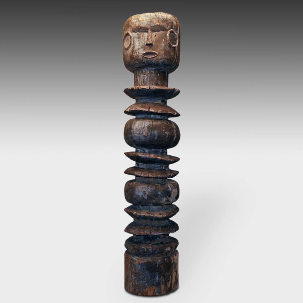 In the recent past the Bongo people lived in the southern part of the province of Bahr-el-Ghazal in the grasslands south of Sudan. The Bongo honored heroic warriors or hunters with sculpted forms known as Ngya, to insure that they were well received into the village of the ancestors. The shape of the markers range from fully naturalistic bodies to abstracted figures. Ngya serve to remind us that those who have gone before can still inspire, help and motivate us in the present.