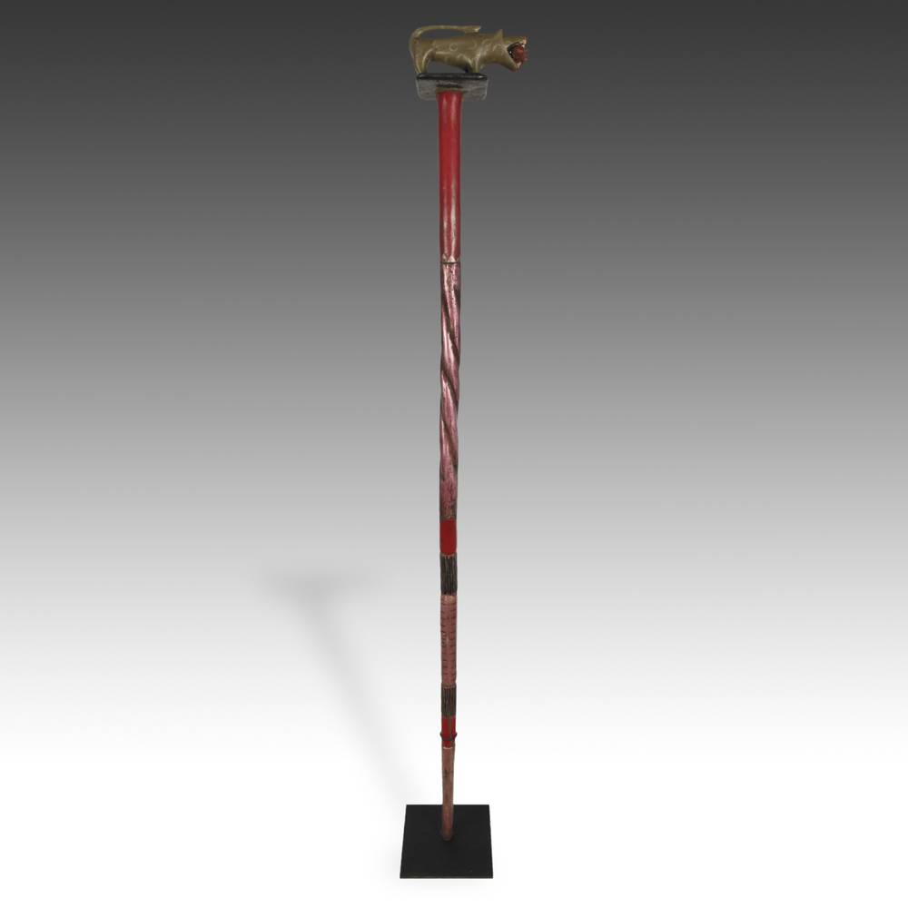 Linguist's Staff Depicting a Leopard Over a Porcupine