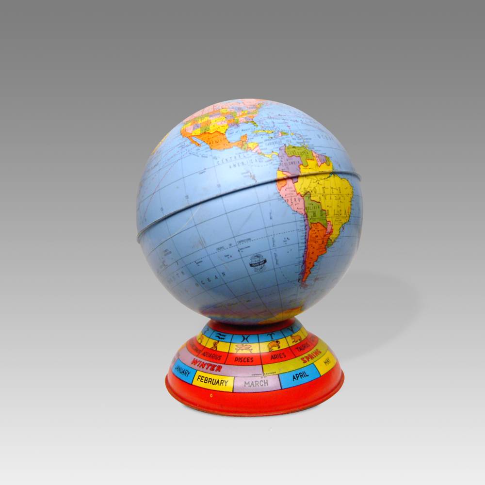 Terrestrial Globe Bank with Months, Seasons, and Zodiac Signs on Base
