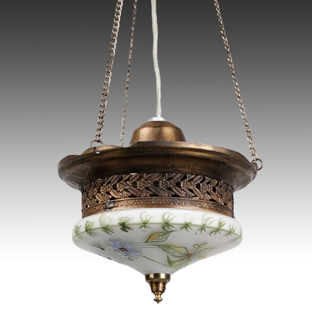 PAINTED EUROPEAN GLASS & BRASS 6'' DIA x 4.25'' H
