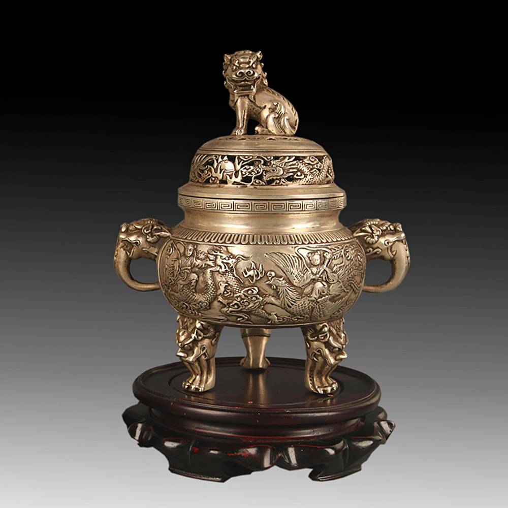CENSER WITH DRAGON, PHOENIX, FOO LION AND CAISHEN DECORATION