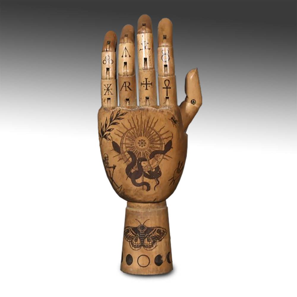 Tattooed Hand with Eye, Skeleton and Serpents