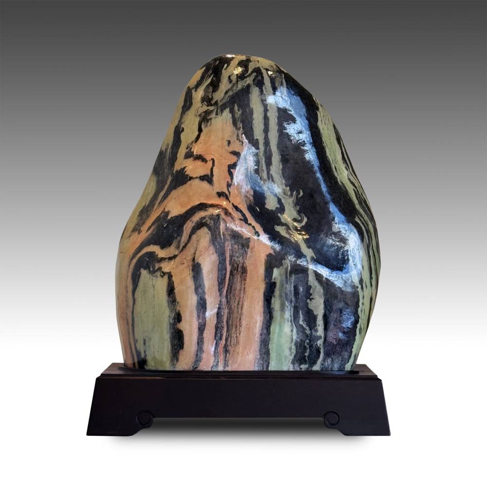 Xiu Yu (Elegant Jade) Stone on Hardwood Base