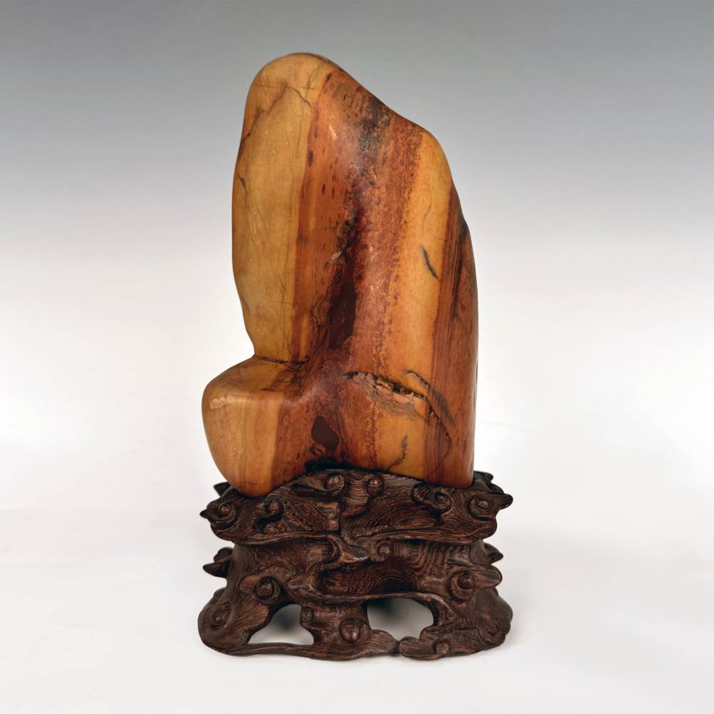 YELLOW WAX STONE WITH HARDWOOD BASE