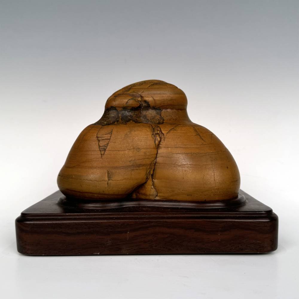 YELLOW WAX STONE WITH HARDWOOD BASE