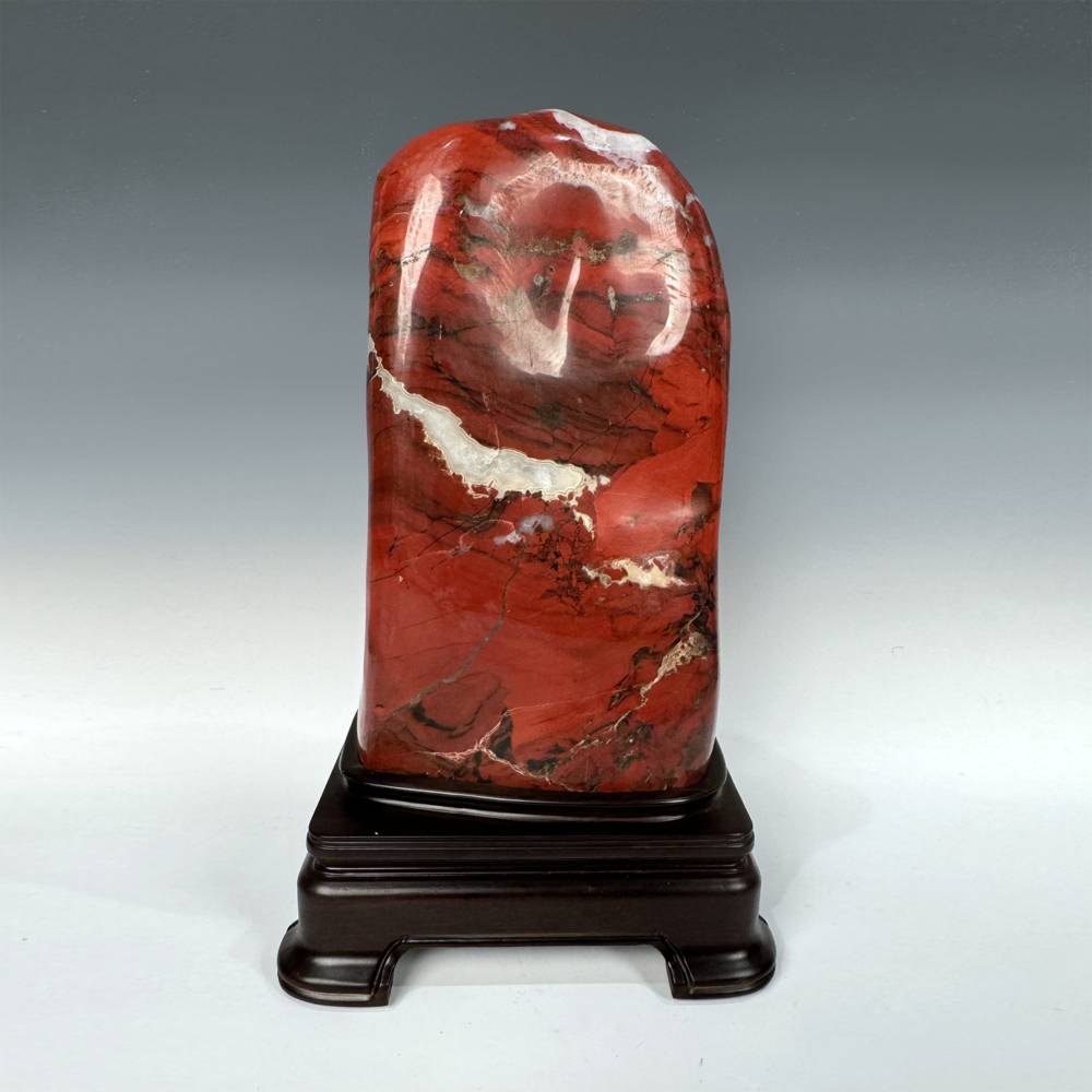 JI XUE SHI OR "CHICKEN BLOOD" STONE WITH HARDWOOD BASE