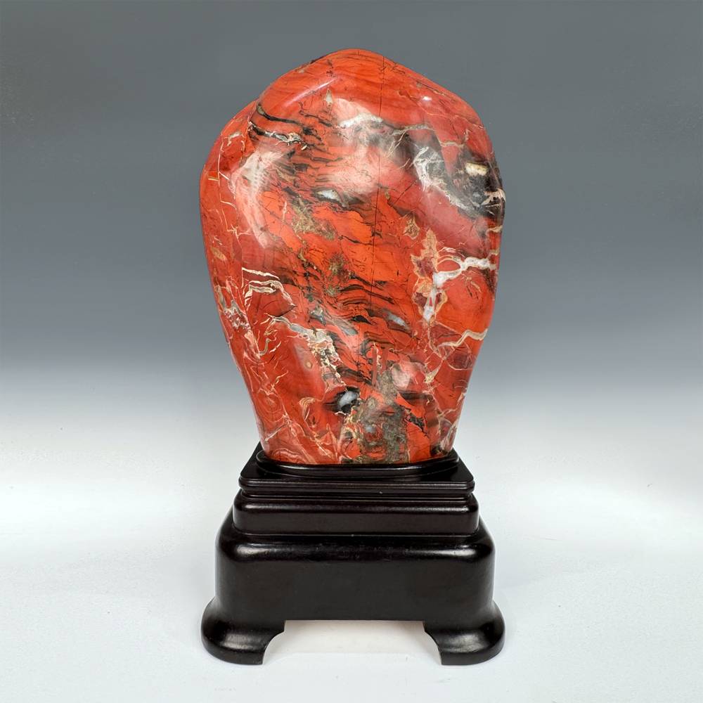 JI XUE SHI OR "CHICKEN BLOOD" STONE WITH HARDWOOD BASE