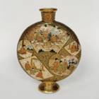 Satsuma Moon Flasque Vase adorned with Samurai & Courtesans