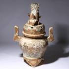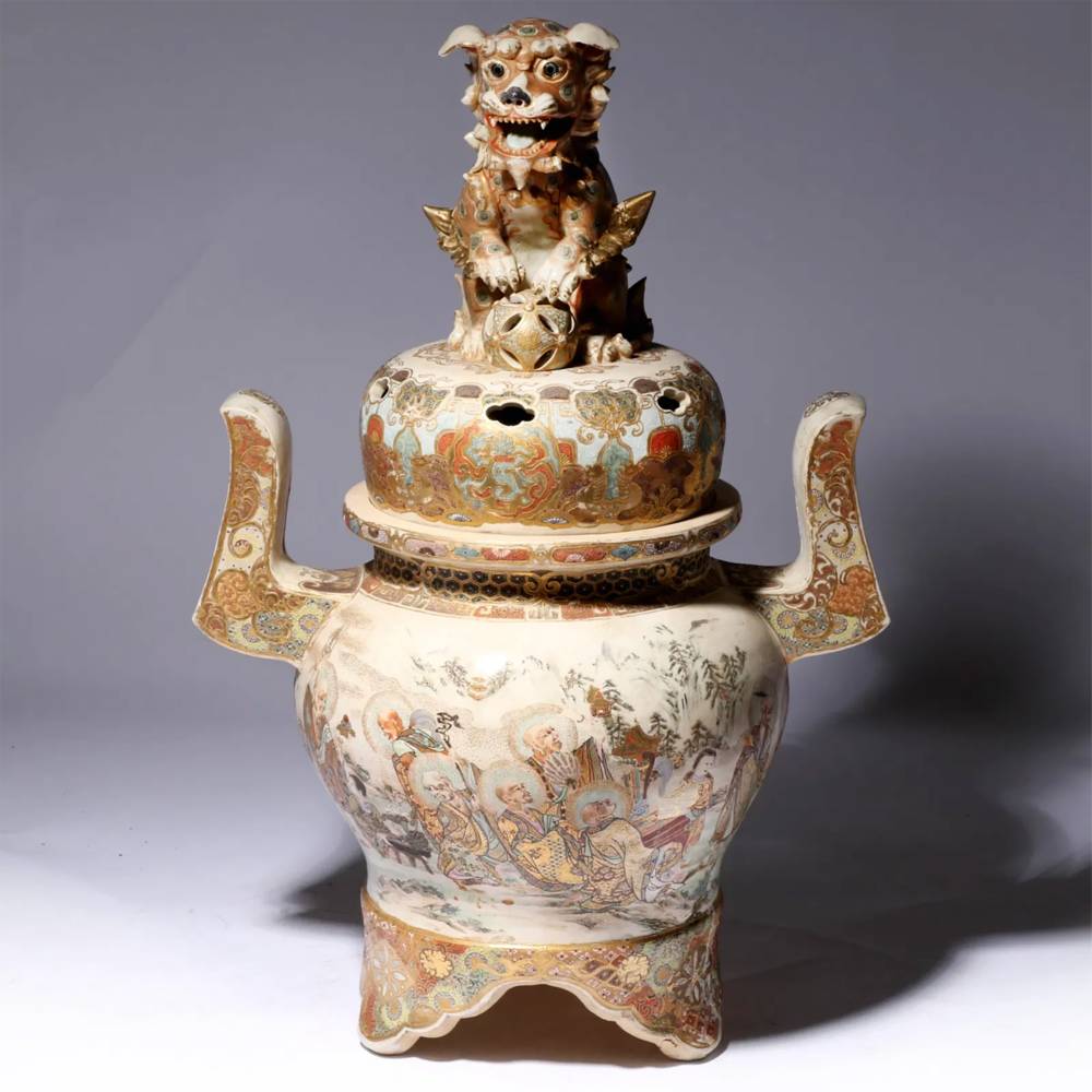 Monumental Satsuma Censer with Foo Dog Lid and Exceptional Painting