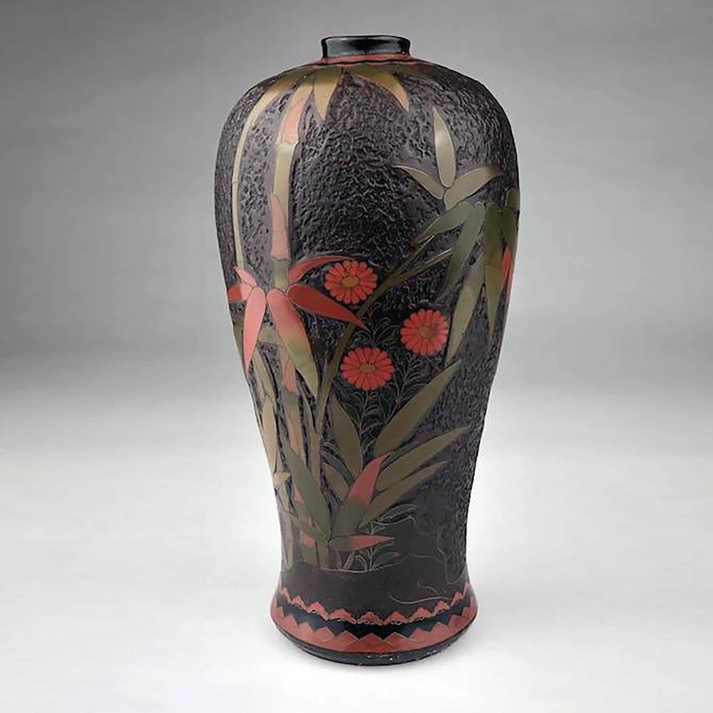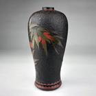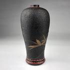 Japanese Totai "Tree Bark" vase Depicting bamboo and Flowers
