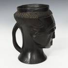 In the courts of the wealthy Kuba kingdom founded in the early 17th century in present day Democratic Republic of Congo, elaborately crafted drinking vessels held great symbolic value. Distributing large quantities of palm wine was a way of displaying wealth and generosity among titleholders and member of the aristocracy. These wooden libation cups were often carved with human and animals forms that communicated the ideals of refinement and power.