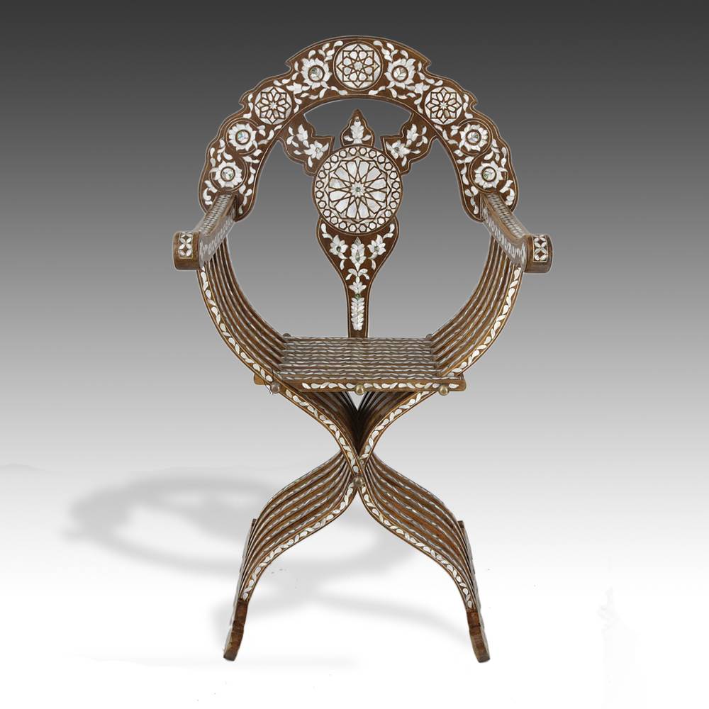 Savonarola Chair With Mother-of-Pearl Inlay and Brass Pins