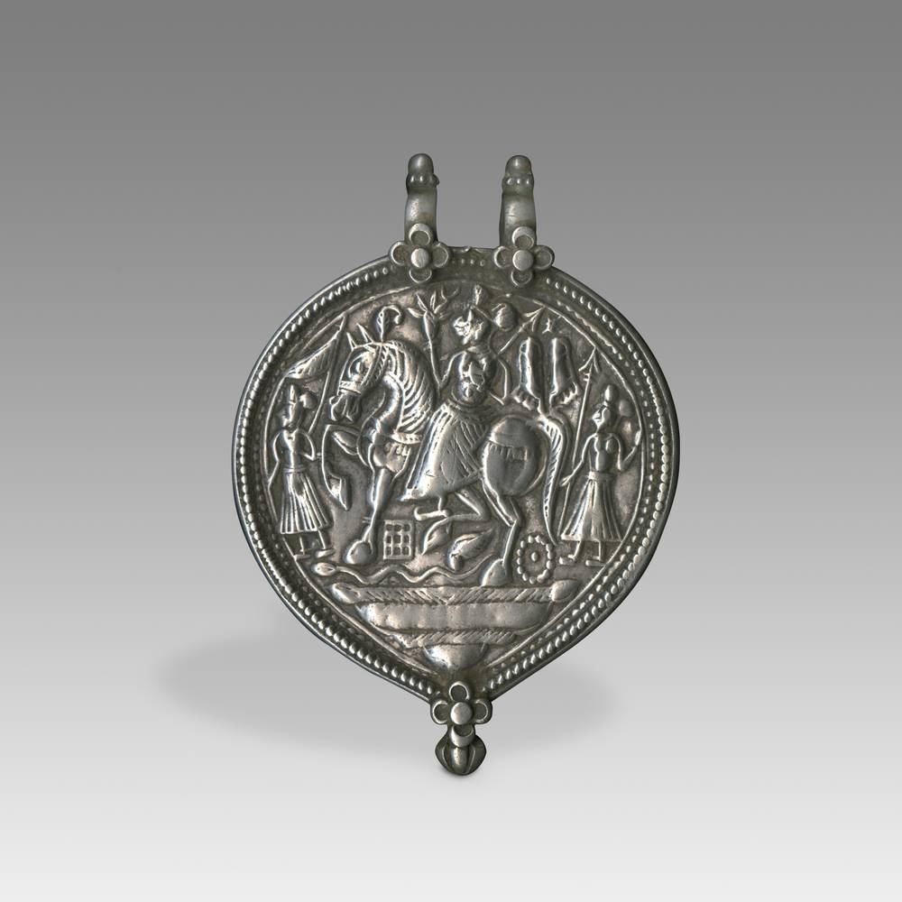 Plaque Amulet Depicting Durga on Horse with Vishnu