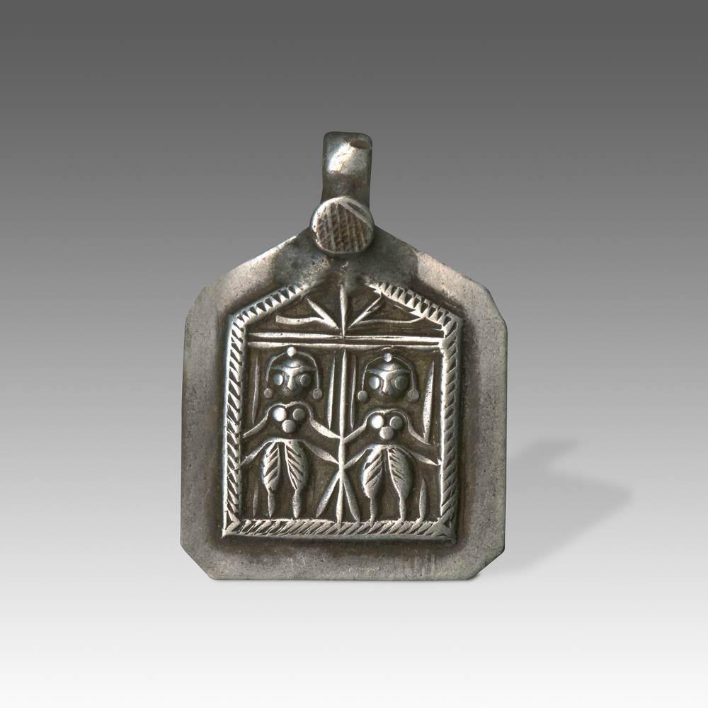 Plaque Amulet Depicting Double Bheru or Bhairava Under Chhatri