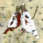 Paint chips and mixed media on paper