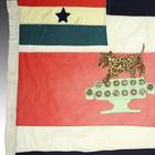 Even though the Akan societies in Ghana had no standing army, the asafo or people's militia, was a well established social and political organization based on military principles. Each asafo group is identified by a particular name and number and through a set of symbols displayed prominently on its flag. Verbal proverbs, a significant facet of Akan culture, are represented by colored cutout figures appliqued on the cotton ground.