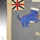 Even though the Akan societies in Ghana had no standing army, the asafo or people's militia, was a well established social and political organization based on military principles. Each asafo group is identified by a particular name and number and through a set of symbols displayed prominently on its flag. Verbal proverbs, a significant facet of Akan culture, are represented by colored cutout figures appliqued on the cotton ground.