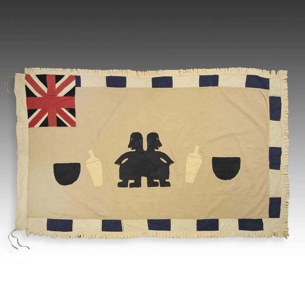 Even though the Akan societies in Ghana had no standing army, the asafo or people's militia, was a well established social and political organization based on military principles. Each asafo group is identified by a particular name and number and through a set of symbols displayed prominently on its flag. Verbal proverbs, a significant facet of Akan culture, are represented by colored cutout figures appliqued on the cotton ground.