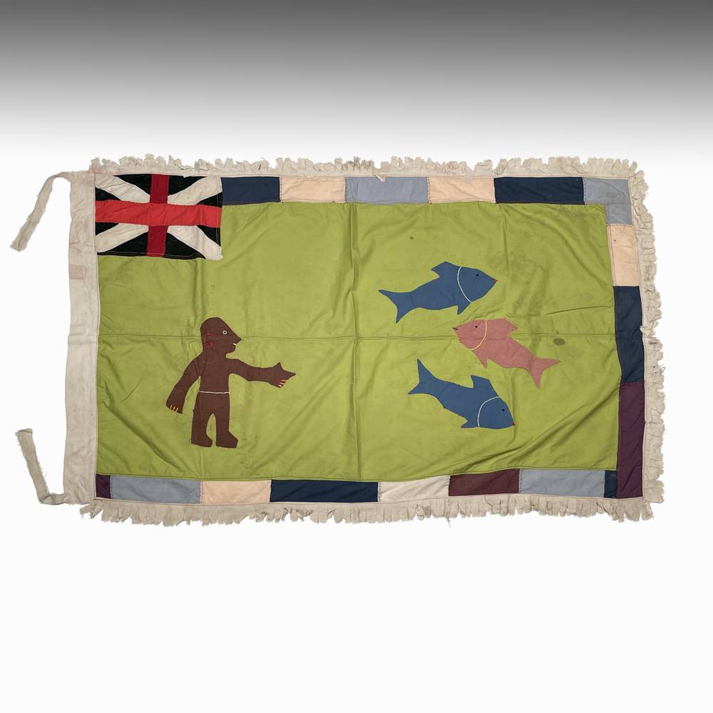 FRANKAA OR ASAFO MILITARY FLAG; Brown Man Shooting at 3 Fish