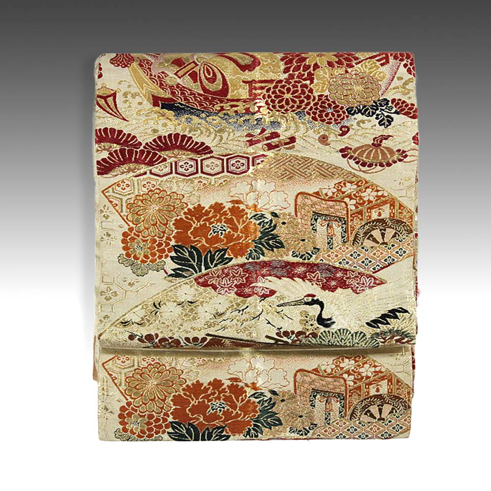 Nagoya Obi with Crane and Flower Motif